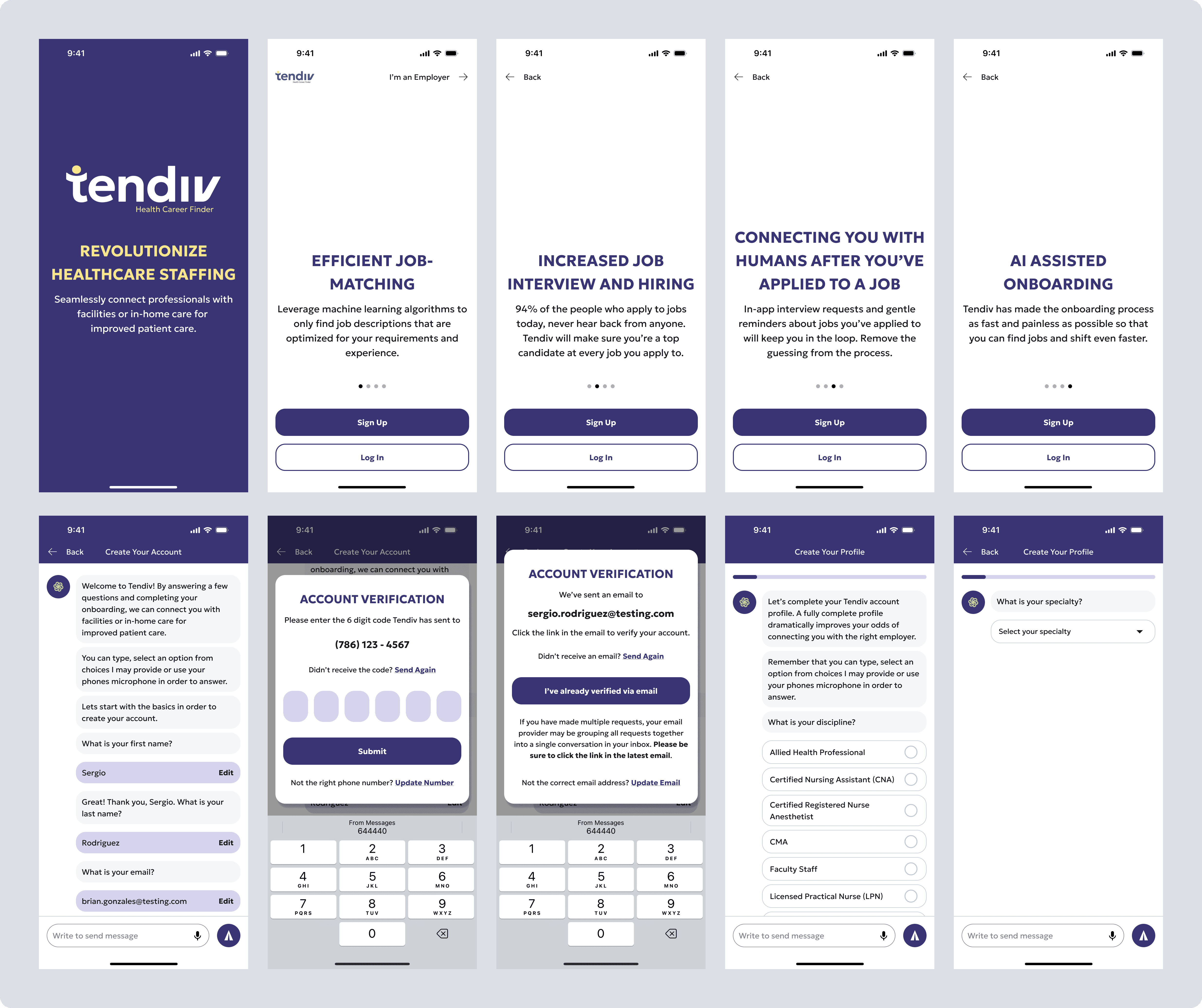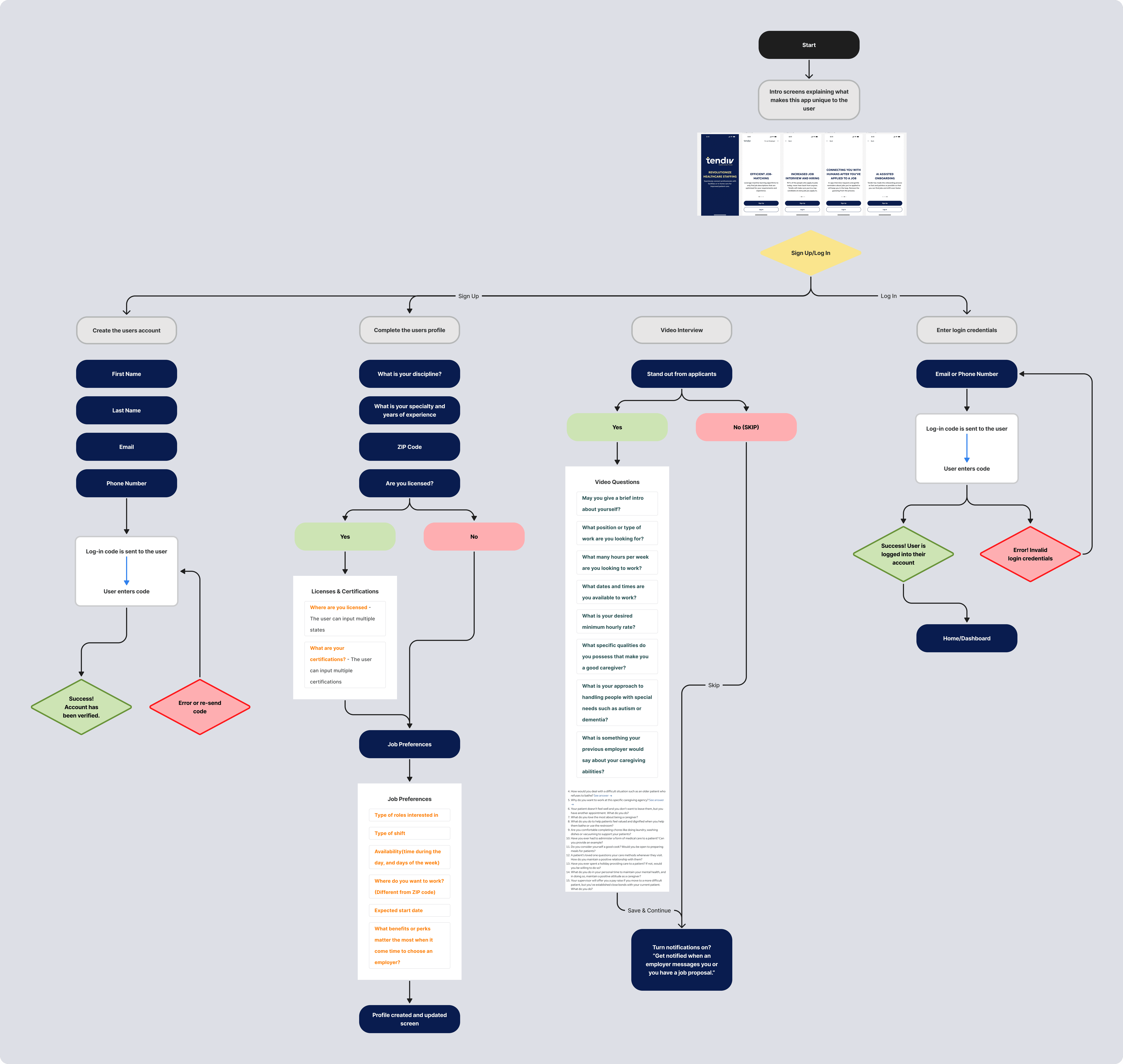 • Build flows for account creation, profile completion, availability, and job discovery